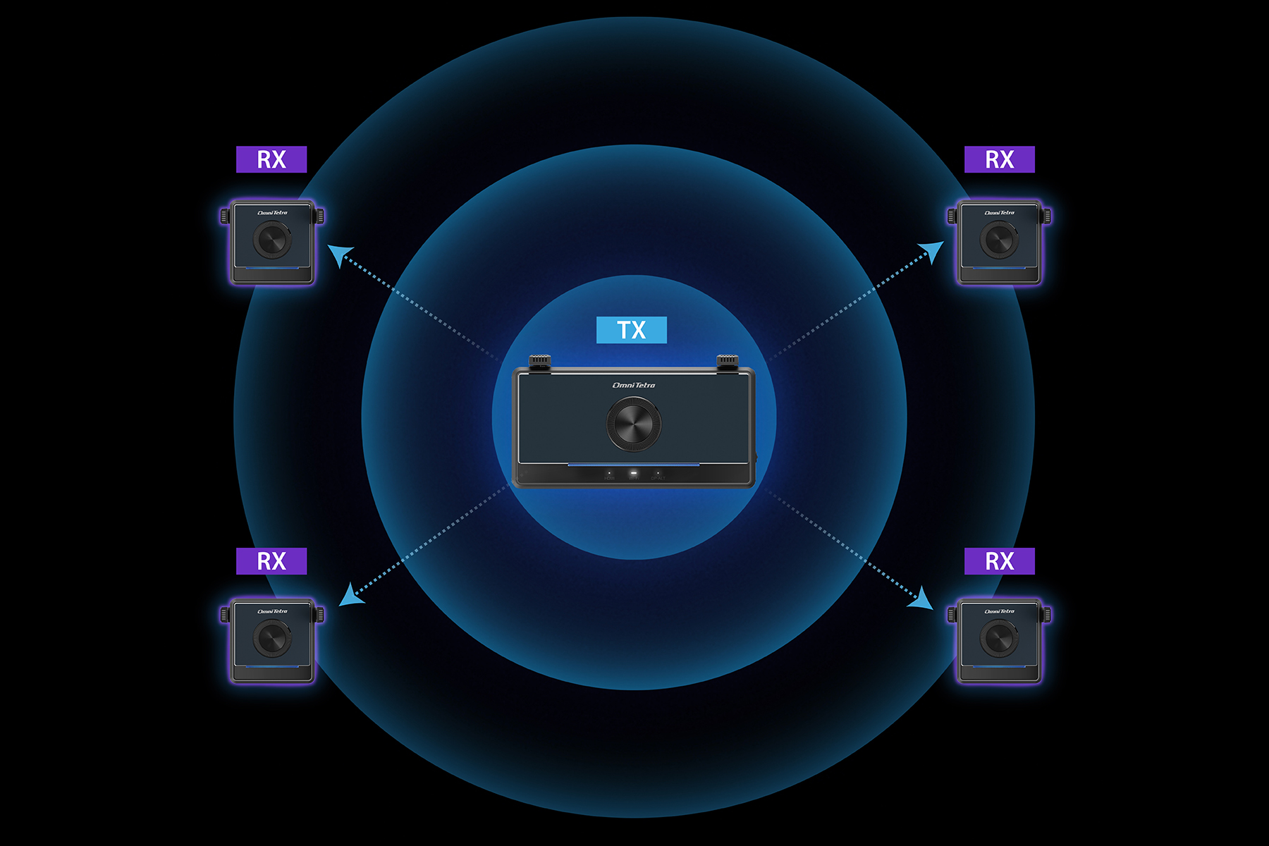 200–600 公尺(開放環境下,依接收器的數量而定) |